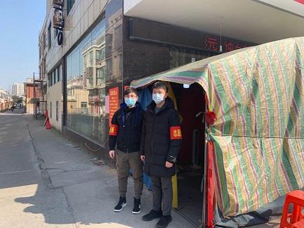 “請停車測量體溫,謝謝配合?!痹诟骺?,姜城水務(wù)的志愿者們戴著口罩、手持紅外線體溫計,協(xié)助卡口防疫工作人員,對出入人員進行體溫測量,開展排查、登記、引導(dǎo)工作。